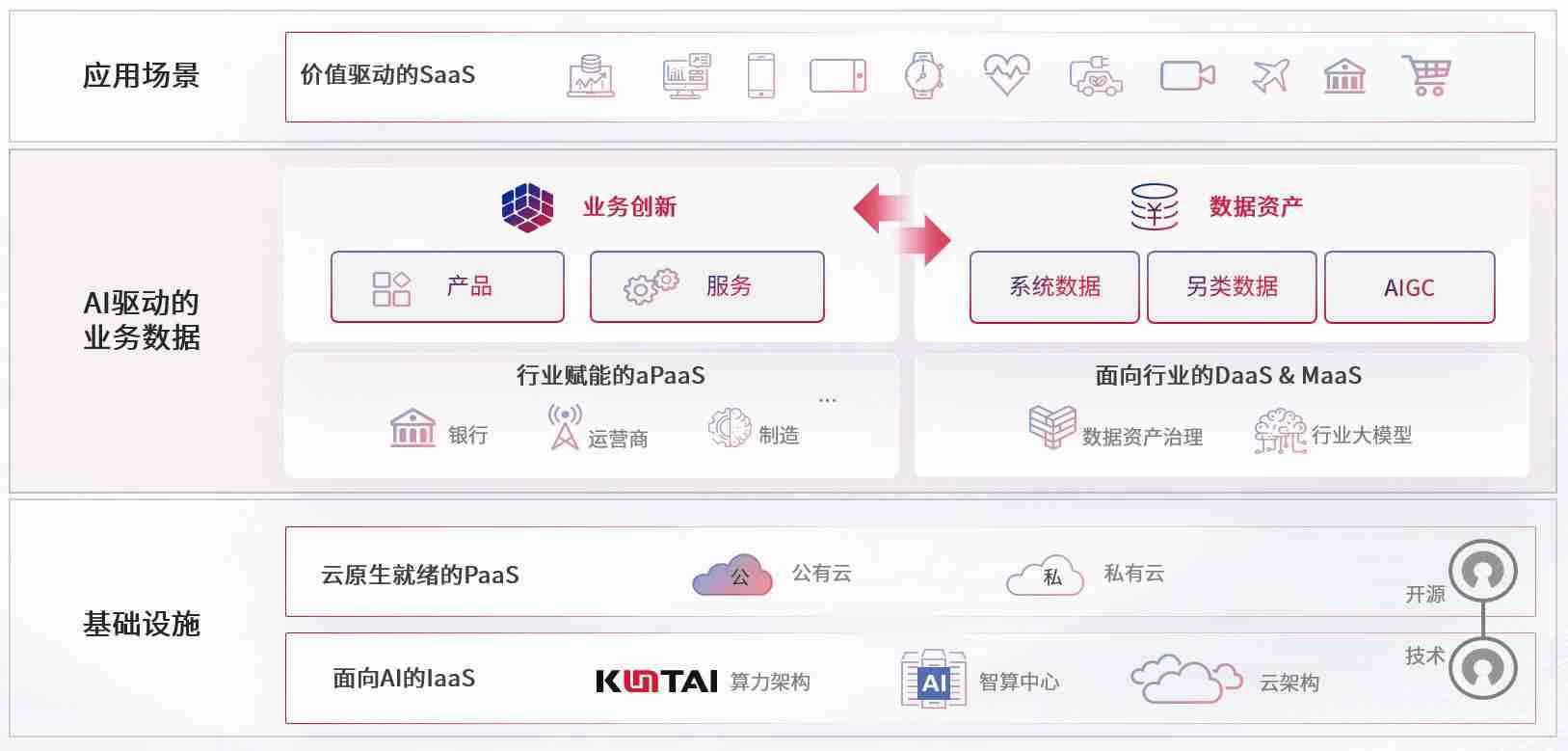 数字时代,,,,围绕企业数字化转型的关键要素,,,,NO钱包数码开创性的提出数云融合战略和技术体系框架,,,着力在云原生、、数字原生、、、AI原生和信创产业上架构产品和服务能力,,,为处在不同数字化转型阶段的快消零售、、汽车、、金融、、医疗、、政企、、、、教育、、、、运营商等行业客户提供泛在的敏捷IT能力和融合的数据驱动能力,,,,构建跨界融合创新的数字业务场景和新业务模式,,,助力企业级客户建立面向未来的核心能力和竞争优势,,全面推动社会的数字化、、、智能化转型升级。。。